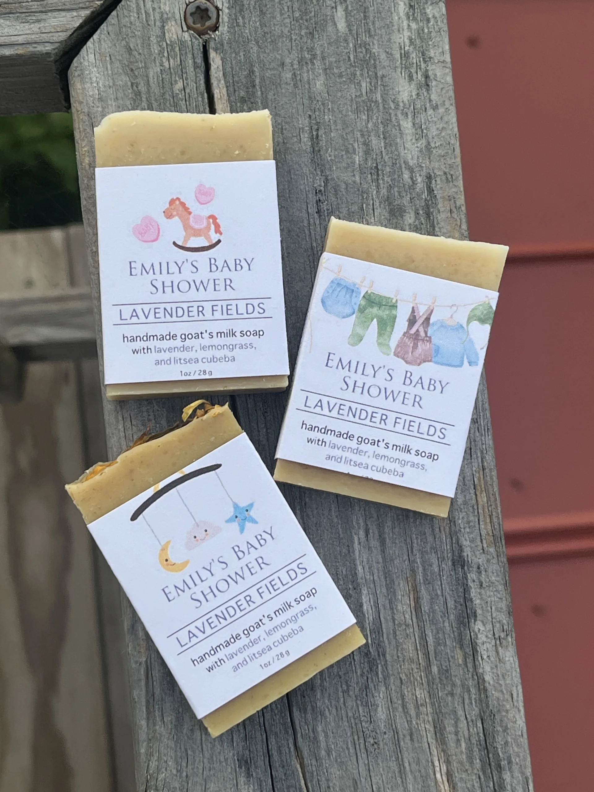 These baby shower party favors can be totally customized with colors, names, dates and more. This amenity size custom soap bar will be a special take home gift that is eco friendly, natural and nourishing for your guests, and something everyone will enjoy. Let us help you create a party favor for your guests to remember! Contact us today, and lets collaborate.