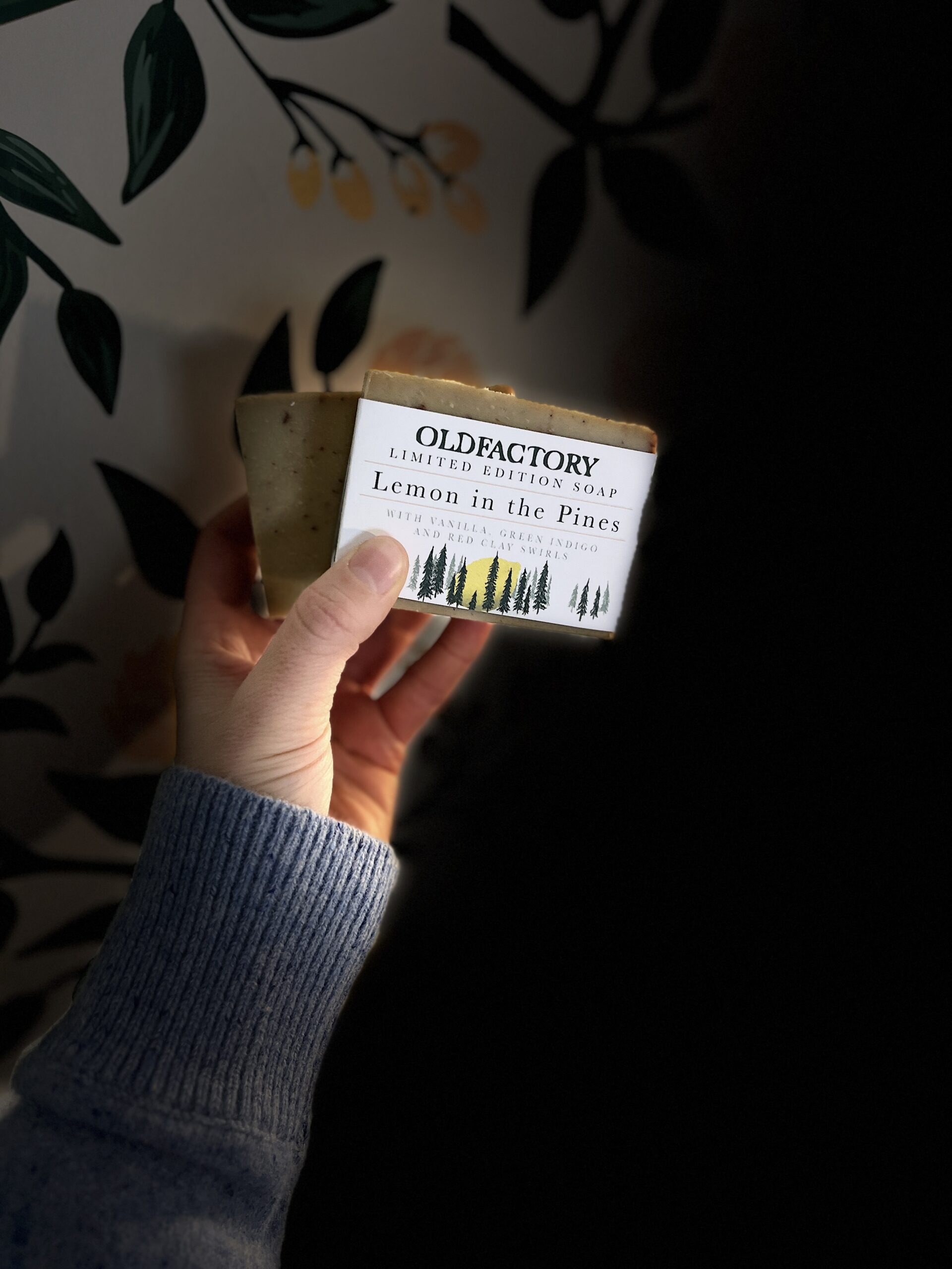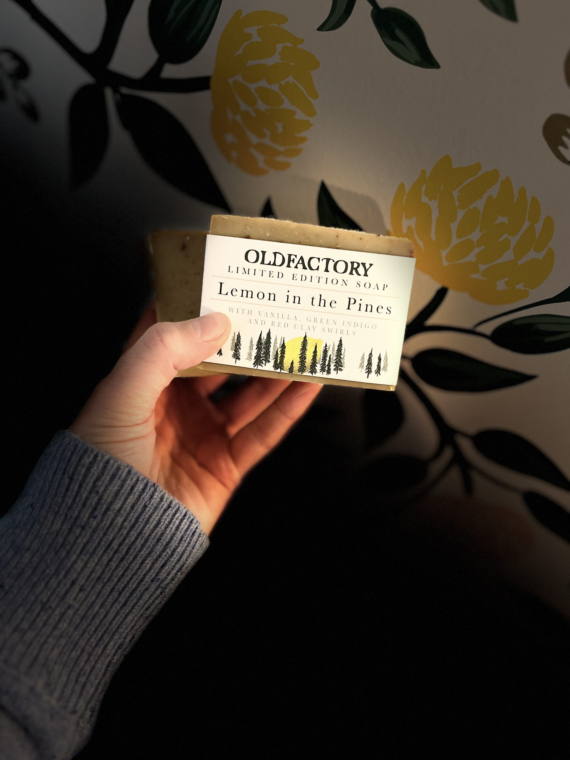 Our January 2025 Limited edition soap features notes of lemon and pine essential oil and a hint of vanilla extract. A gentle yet silky scrub, featuring ground almonds and french red clay.