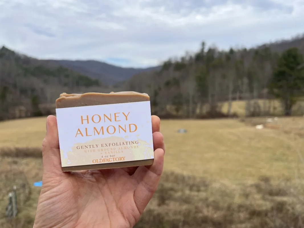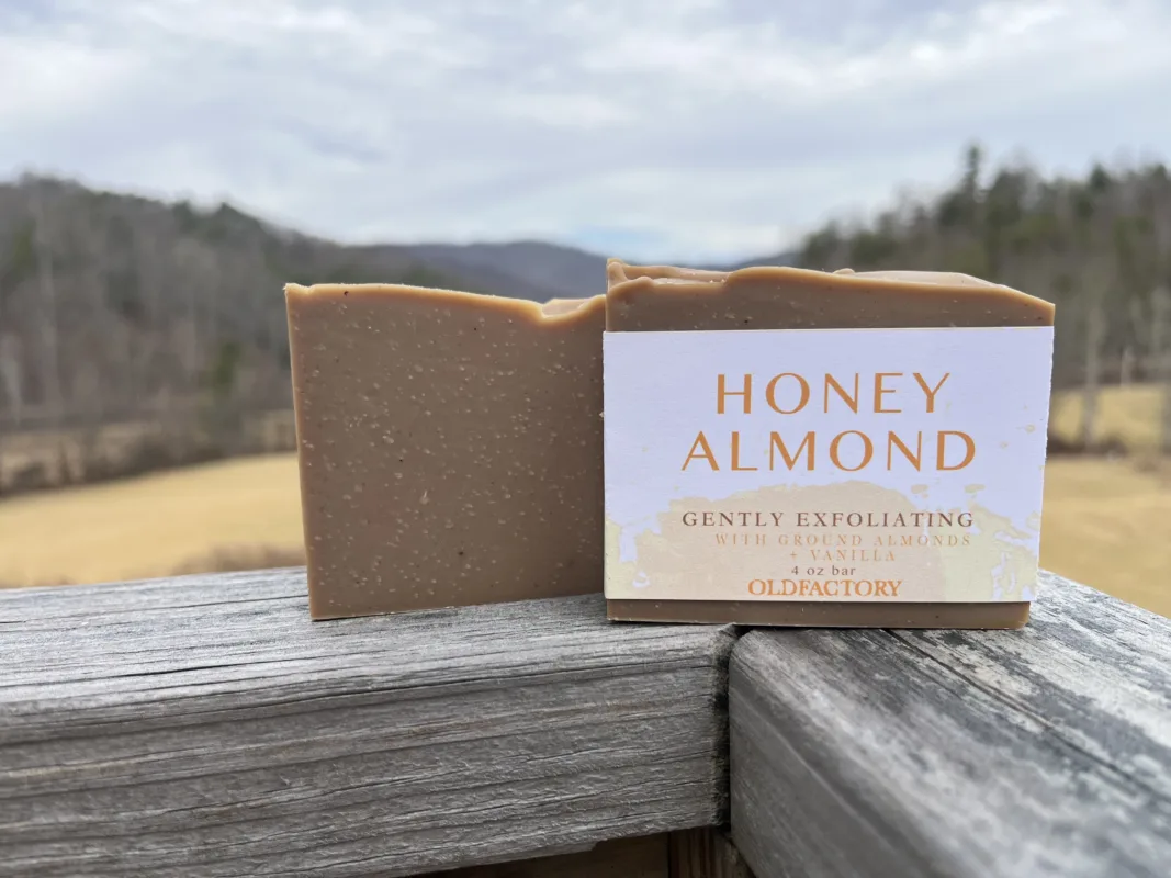 Honey Almond Delight This very limited edition bar is the remainder of our delicious honey almond natural oil! An extract blend no longer available, along with some added vanilla absolute – but oh my god does it smell delicious. This simple bar features ground almond as well, offering a very gentle exfoliation.
