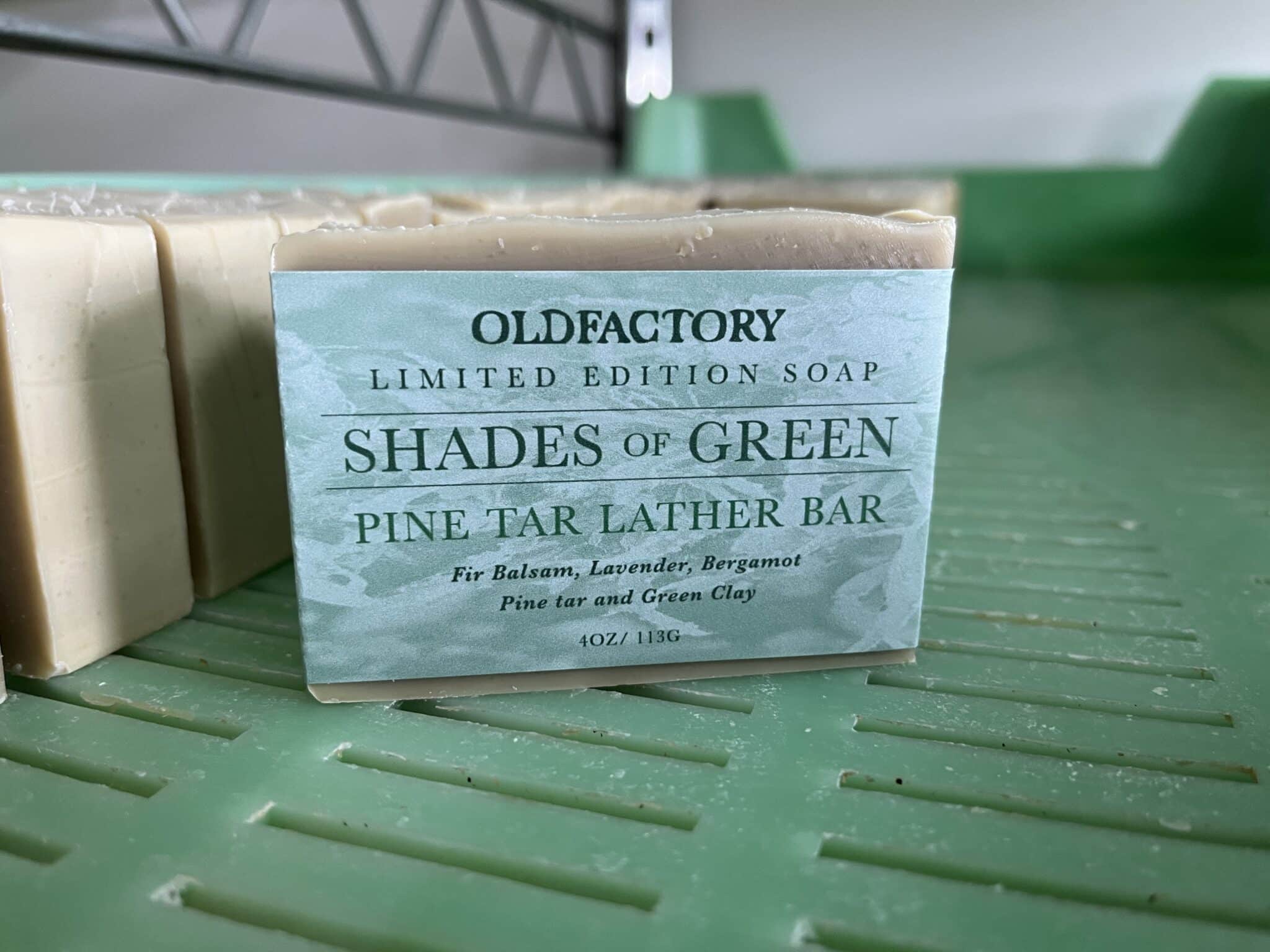 SHADES OF GREEN Pine Tar Soap 2.0… Love a good lather? Look no further, Shades of Green is one of our most lathery bars yet. Smoky and coniferous, with a hint of delicate flowers and citrus. This bar features a strong pine tar aroma with a hint of lavender, fir balsam and bergamot essential oil.
